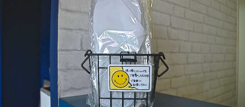 また、白と青を基調とした清潔な待合室には滅菌済みスリッパに加え、より安心してご利用いただける使い捨てスリッパもご用意しております。